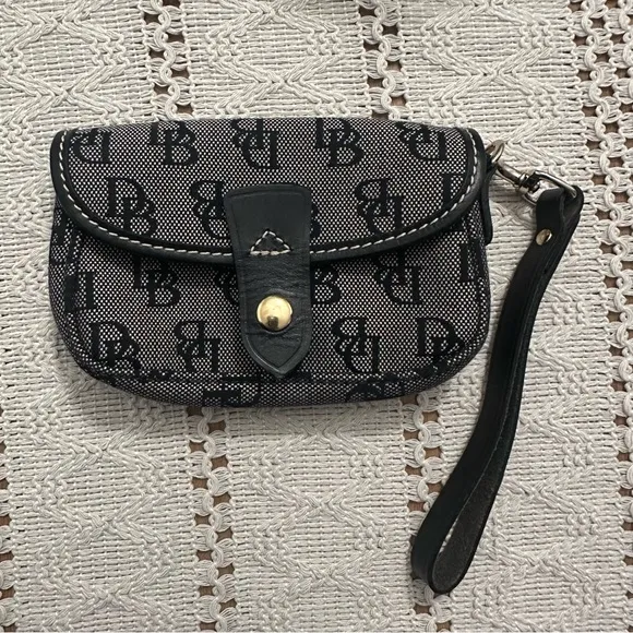Vintage 90s Dooney and Bourke Black and Gray Canvas Monogram Coin Pouch Wallet - $40 - From Xochitl