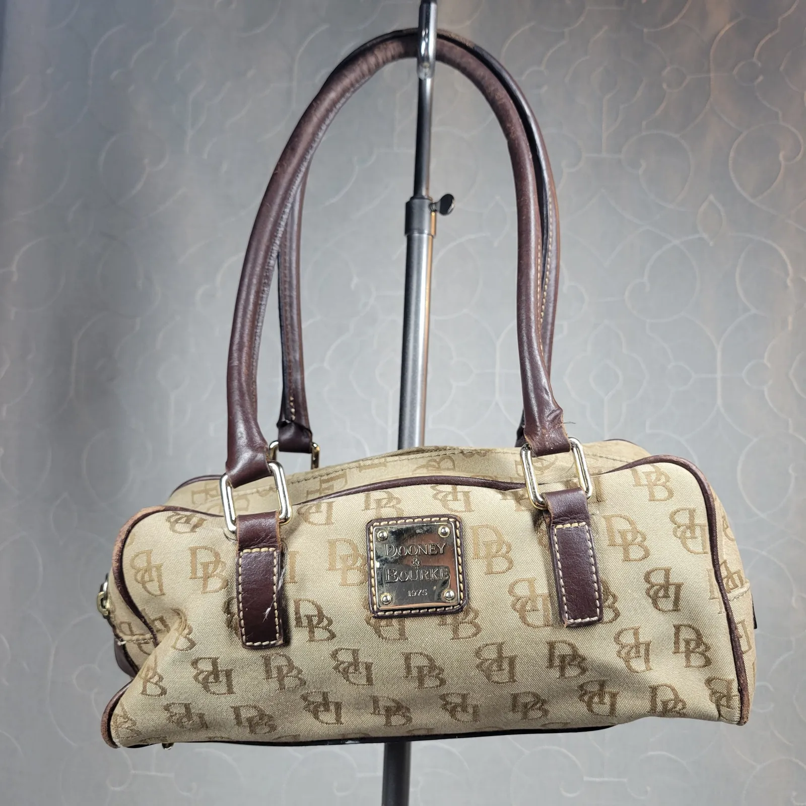 Dooney & Bourke Womens Shoulder Bag Brown Monogram Signature Canvas Leather Trim Measurements: 11"Le... Show more