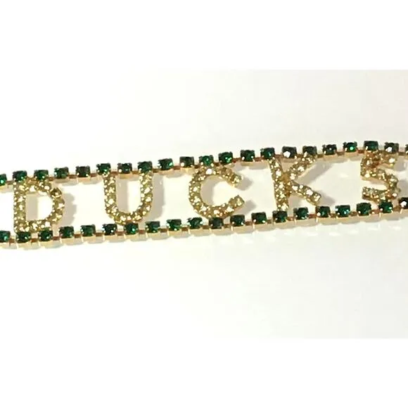 Vintage Dorothy Bauer OREGON DUCKS Rhinestone BRACELET Gold Plated Metal Emerald And Peridot Green Rhinestones! This Vintage Bracelet Features Over 100 Hand Placed, Gold Plated Pronged Set Rhinestones. Size: Bracelet Is 7" Long. Rhinestones Are 2mm Square Tag Reads “Bauer” Go Ahead - Go In Style! Go Ducks! Great Birthday Gift For Her (or him) - or For Yourself! Thank You! l