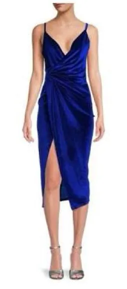 Turn heads in this striking bright blue midi dress by Double Crazy. Made from a soft, velvet-like fa... Show more