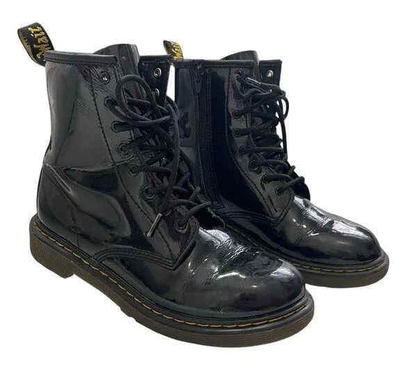 These Dr. Martens 1460 boots feature a glossy black patent leather build with classic lace-up combat... Show more