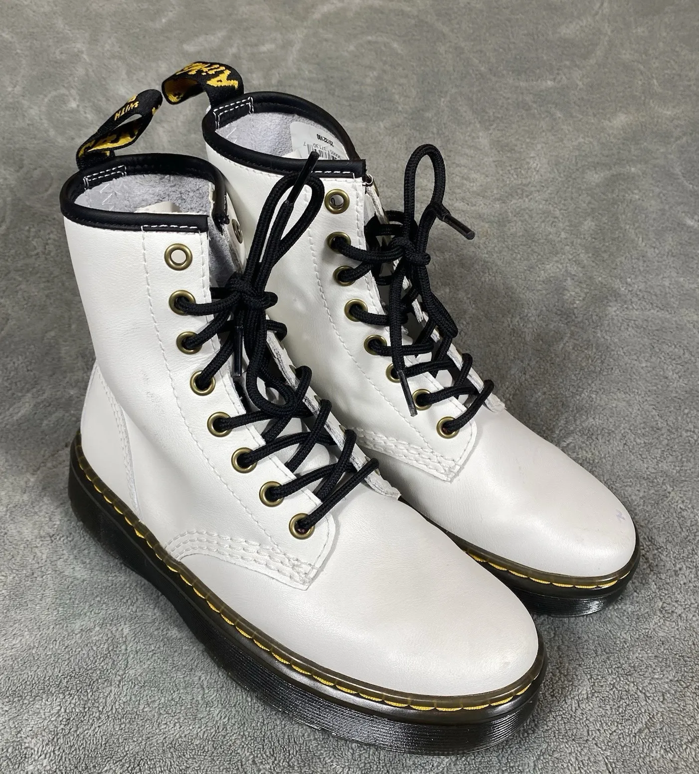 The Dr. Martens Luana White Leather Lace Up Combat Boots for women in size 5 are a stylish and durab... Show more