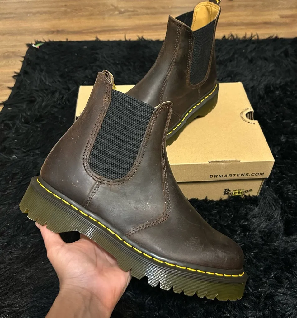 Authentic DR MARTENS 27896 Ankle Chelsea boots booties shoes Brown distressed leather material... Show more