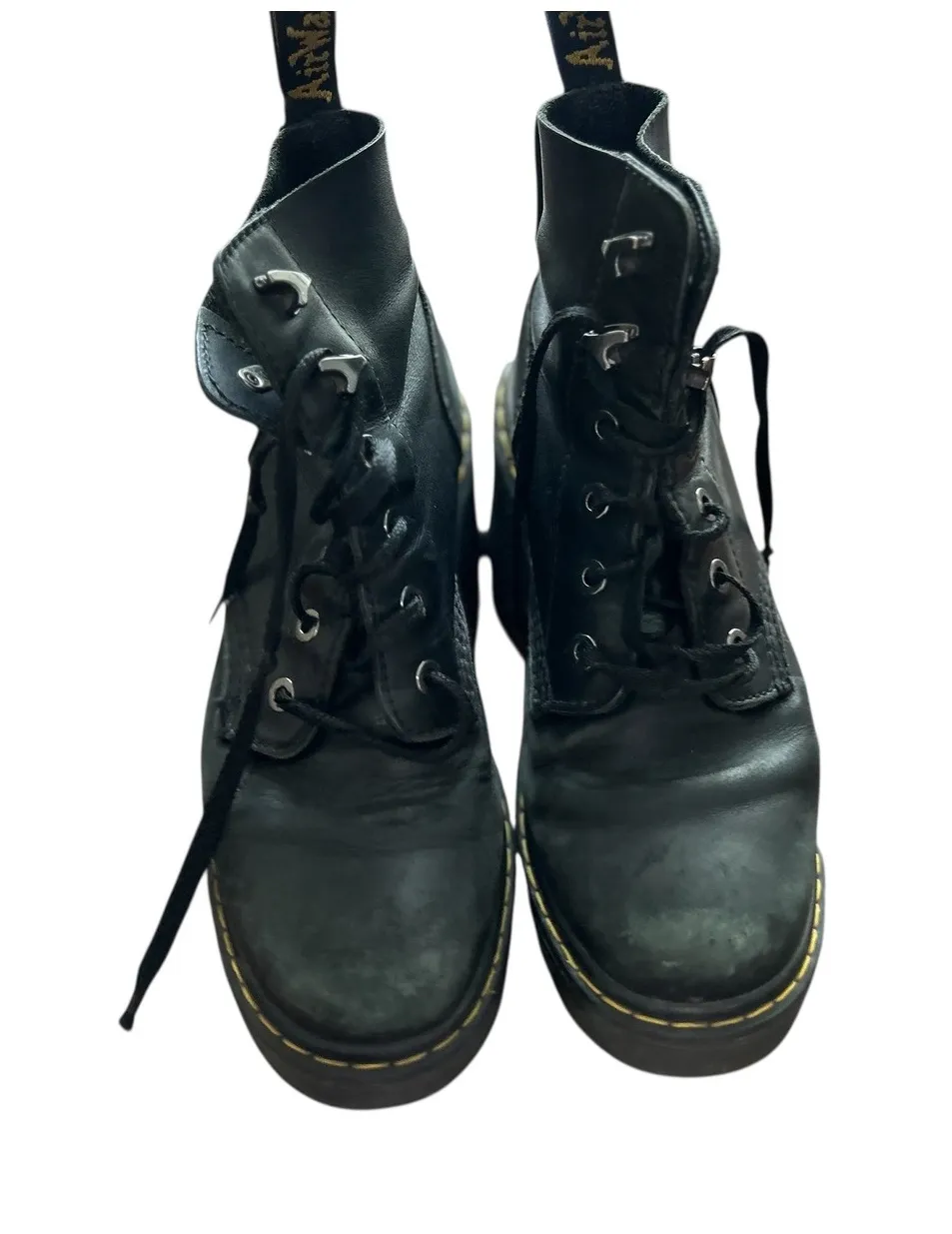 Step out in edgy confidence with these Dr Martens black leather boots. Crafted for durability and st... Show more