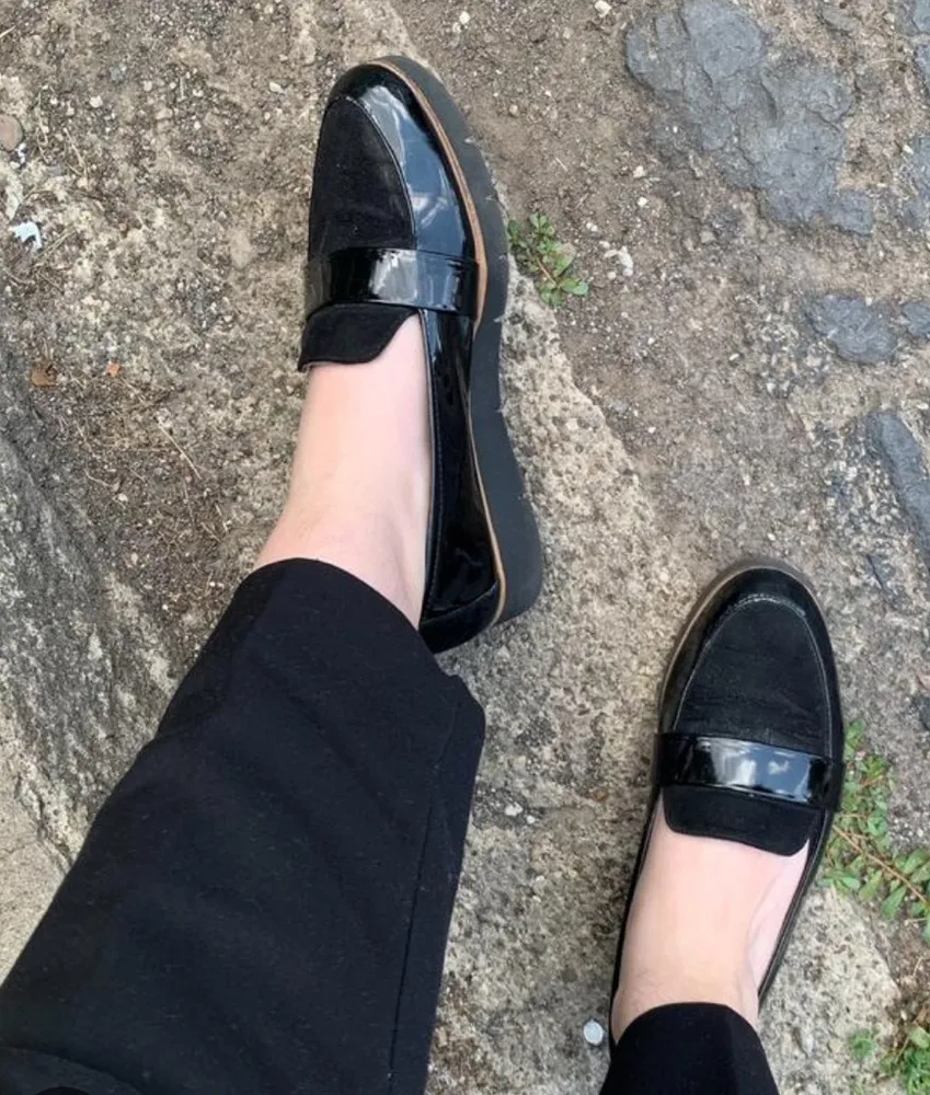▪️Preowned in good condition ▪️Models wearing similar,check all photos ▪️Color: Black ▪️Size:7.5 ▪️Patent leather upper ▪️Slip-on ▪️Round toe ▪️Synthetic lining ▪️BE Energized footbed ▪️1" platform, 1¼" molded wedge heel ▪️Synthetic lug sole ▪️Imported ▪️All flaws are pictured or described however please expect normal secondhand wear