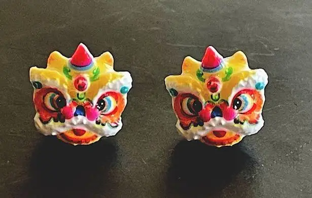 Dragon Dance Mask Earrings Colorful Chinese Lion lucky yellow stud cute gift - $18 New With Tags - From Terra