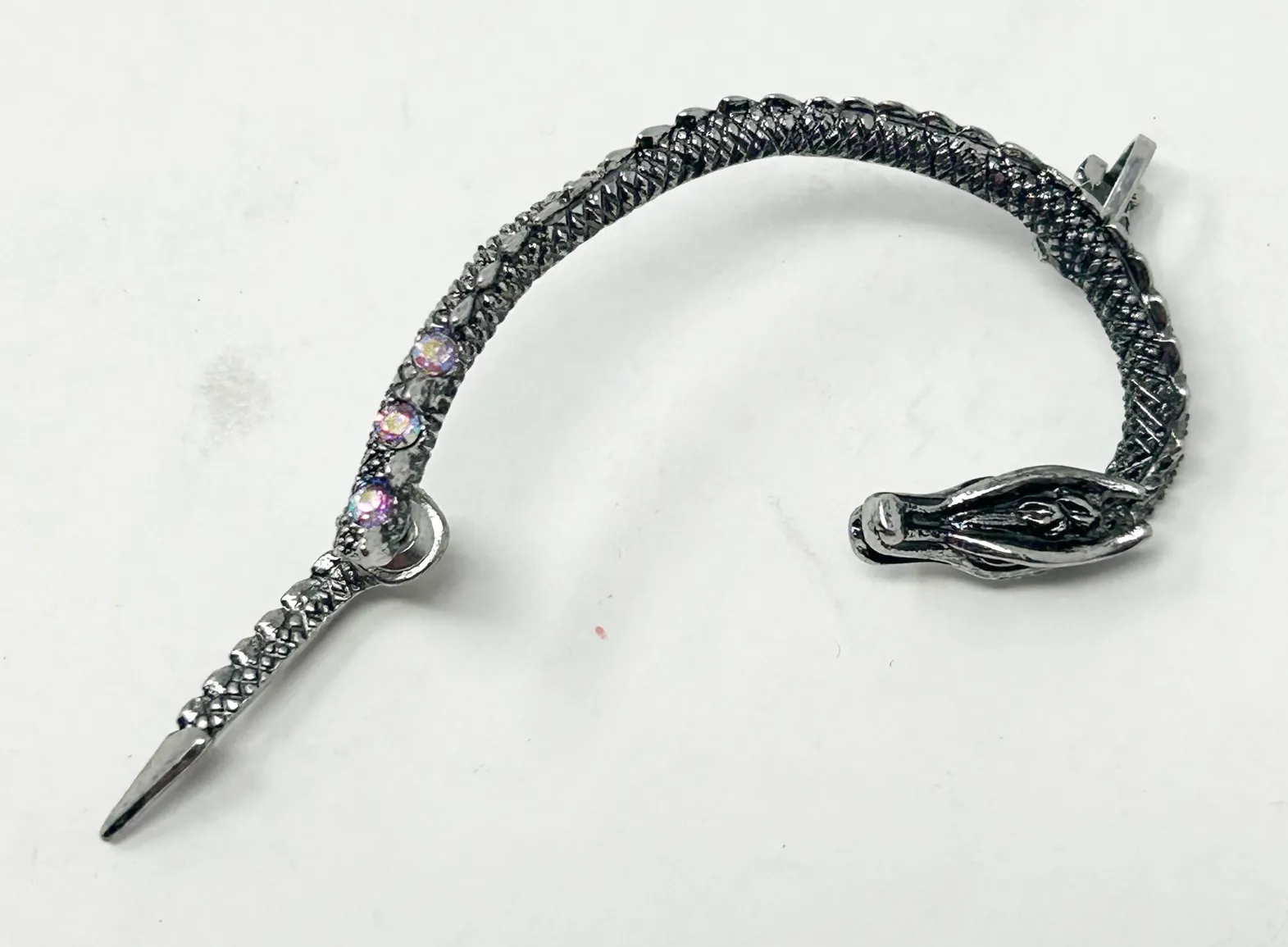 Dragon Goth Punk Ear Cuff Wrap Tail Earring Gunmetal Rhinestone Dragon Serpent Style: Cuff, Climber... Show more