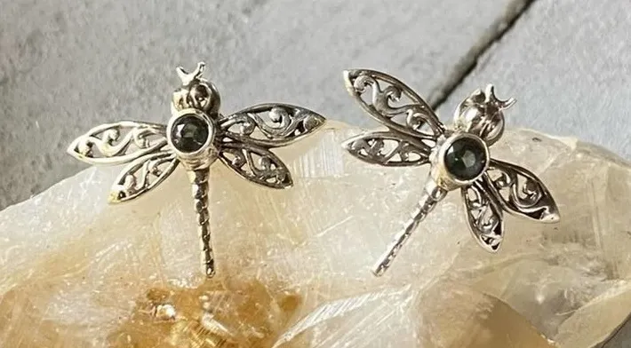 Dragonfly Filigree Rainbow Topaz Solid Sterling Silver Earrings 925 Stamped Solid Sterling Silver 925 Parts Per 1000 Stone: Rainbow Topaz Approximate Measurements Weight: 1.8g