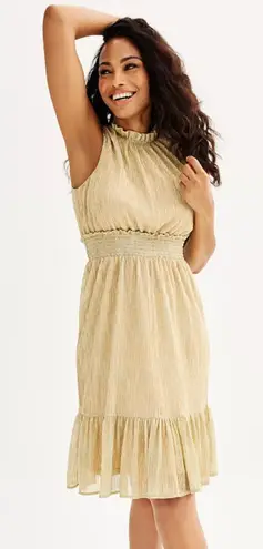 Draper James Gold Metallic High Neck Sleeveless Smocked Waist Tiered Dress Small High Mock neck Smo... Show more