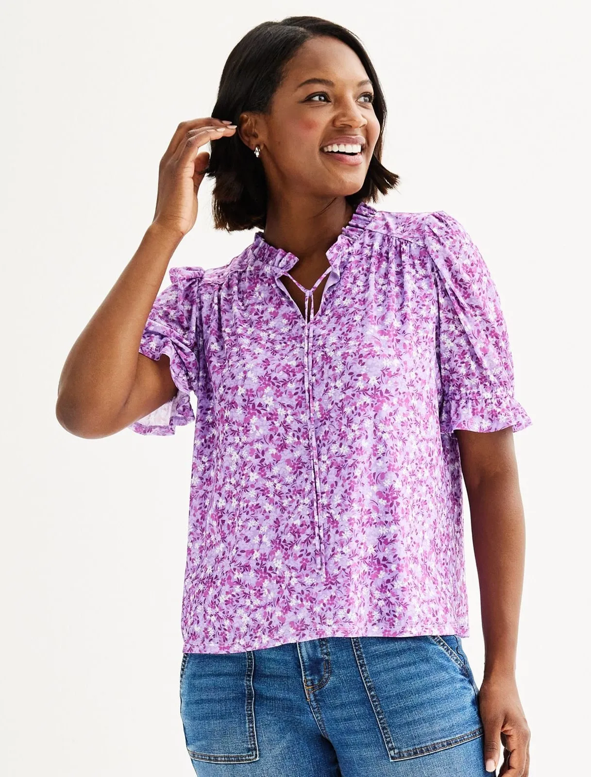 Draper James Lilac Purple Ditsy Floral Tie Front Blouse Top Size XXL - $23 - From kj