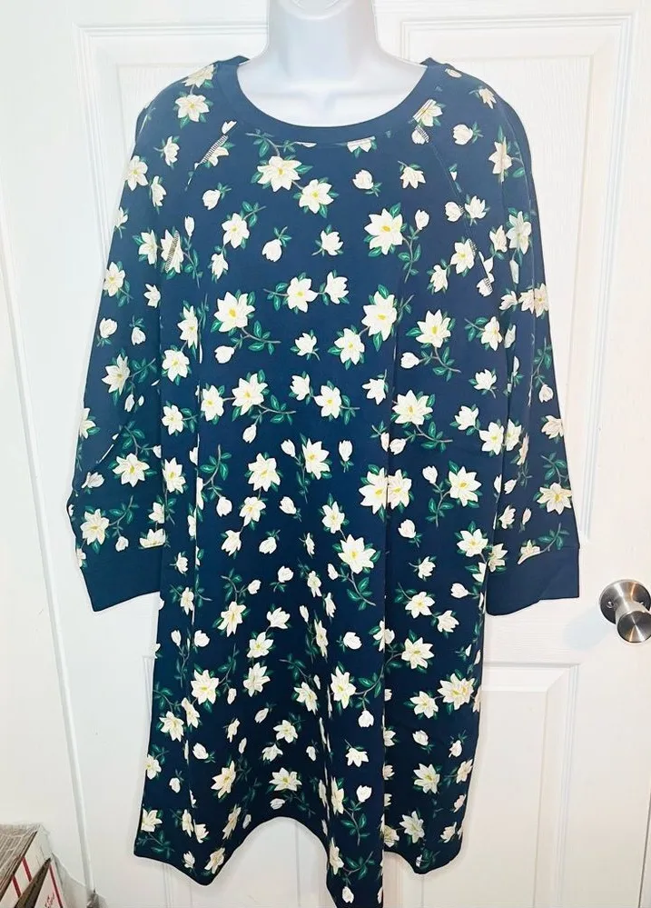 Draper James Magnolia Sweatshirt Dress Floral Midi Blue White Plus Size 1X. Floral print, french ter... Show more