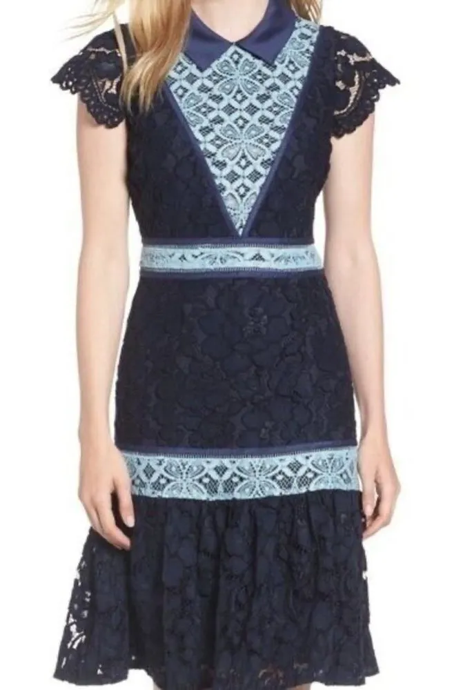 Draper James Nassau Navy Lace Tiered Collar Short Sleeve Dress Size 2 Blue - $35 - From Sarah