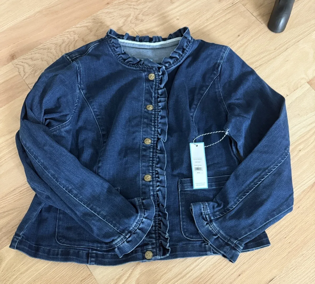 Draper James RSVP Denim Jacket Dark Blue Ruffle Trim Sz 1X Pockets Gold Buttons - $50 New With Tags - From Amy