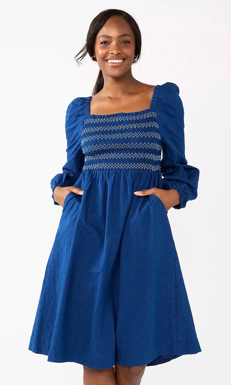 Draper James RSVP Puff Long Sleeve Smocked Bodice Dress Knee Length Blue EUC S - $46 - From Abby