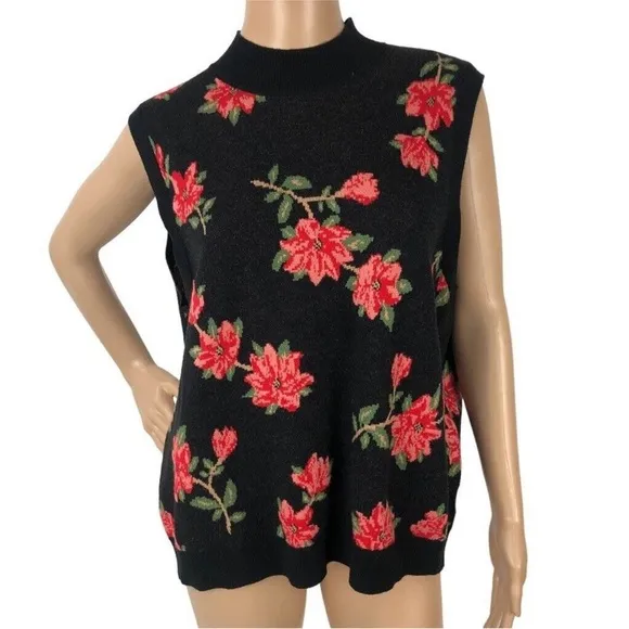 Draper James RSVP Sleeveless Sweater Vest Size XL Black Floral Print High Neck - $23 - From Kim