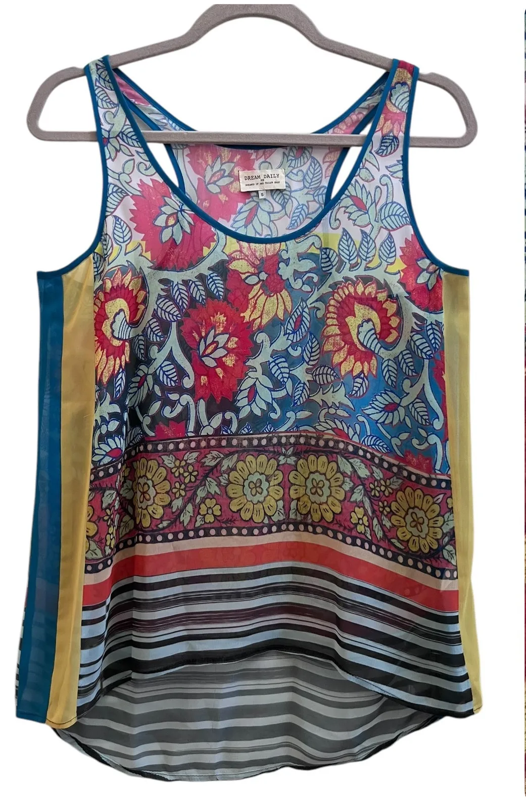 Dream Daily Anthropologie Boho Print Semi Sheer Racerback Tank Top Size Small - $21 - From M