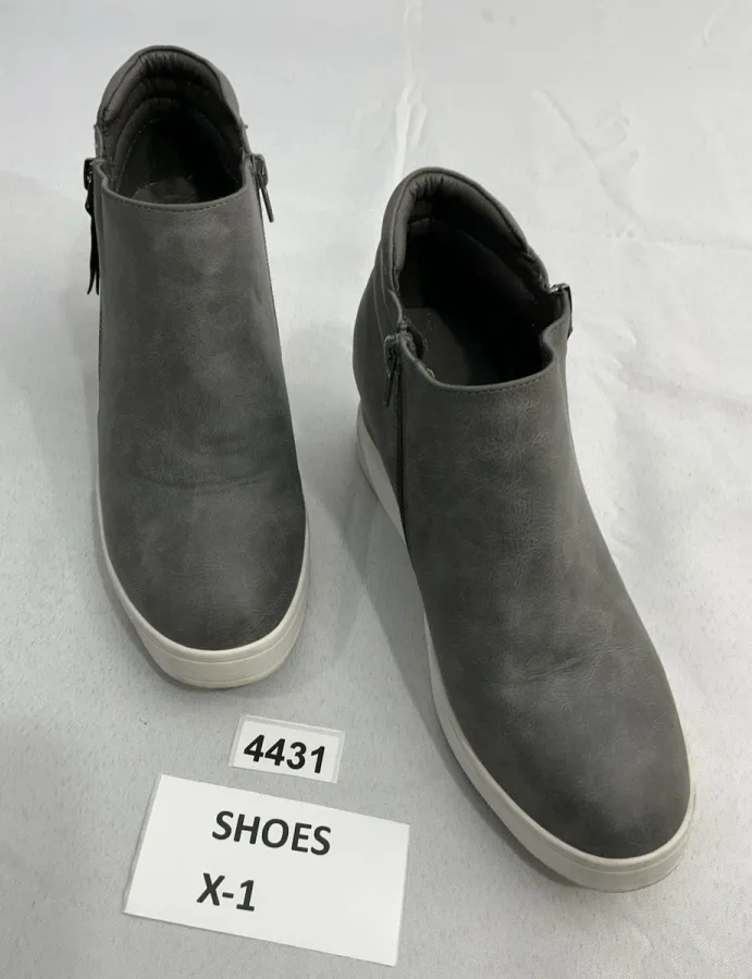 Elevate your fashion game with these stylish Dream Pairs ankle boots. The gray color and faux leather material make them versatile and perfect for any outfit. The 2” wedge heel style provides comfort and a chic touch. The bootie style is trendy and perfect for any occasion. These women's boots have a side zip closure for easy wear. They are available in US shoe size 8.5. Add them to your shoe collection today! These bootie sneakers are pre owned and look to be in excellent condition!