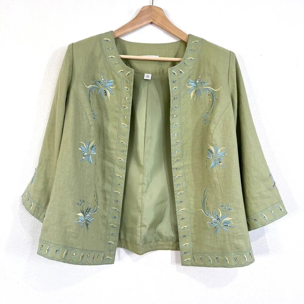 Dressbarn Blazer Womens 14 Sage Green Linen Floral Embroideries & Beaded Career Business It is in... Show more