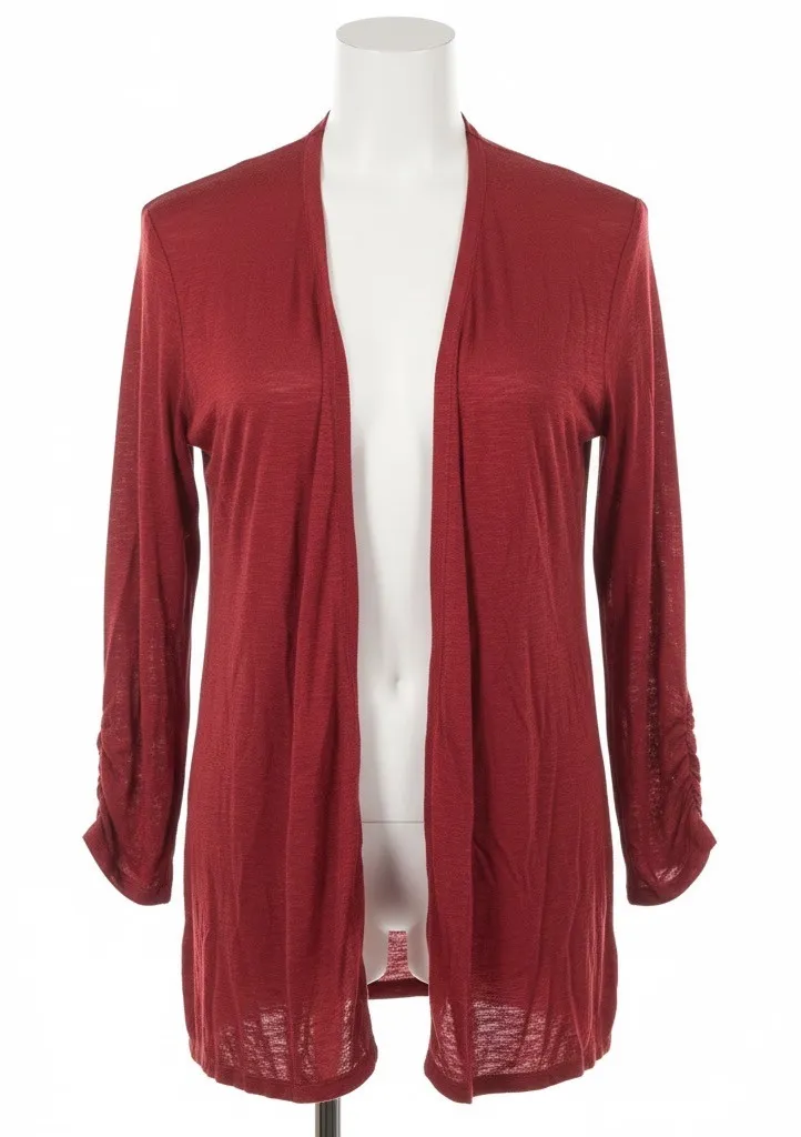 red sweater, long sleeve, knit, women's fashion, casual wear, lightweight, ruched sleeves, layering... Show more