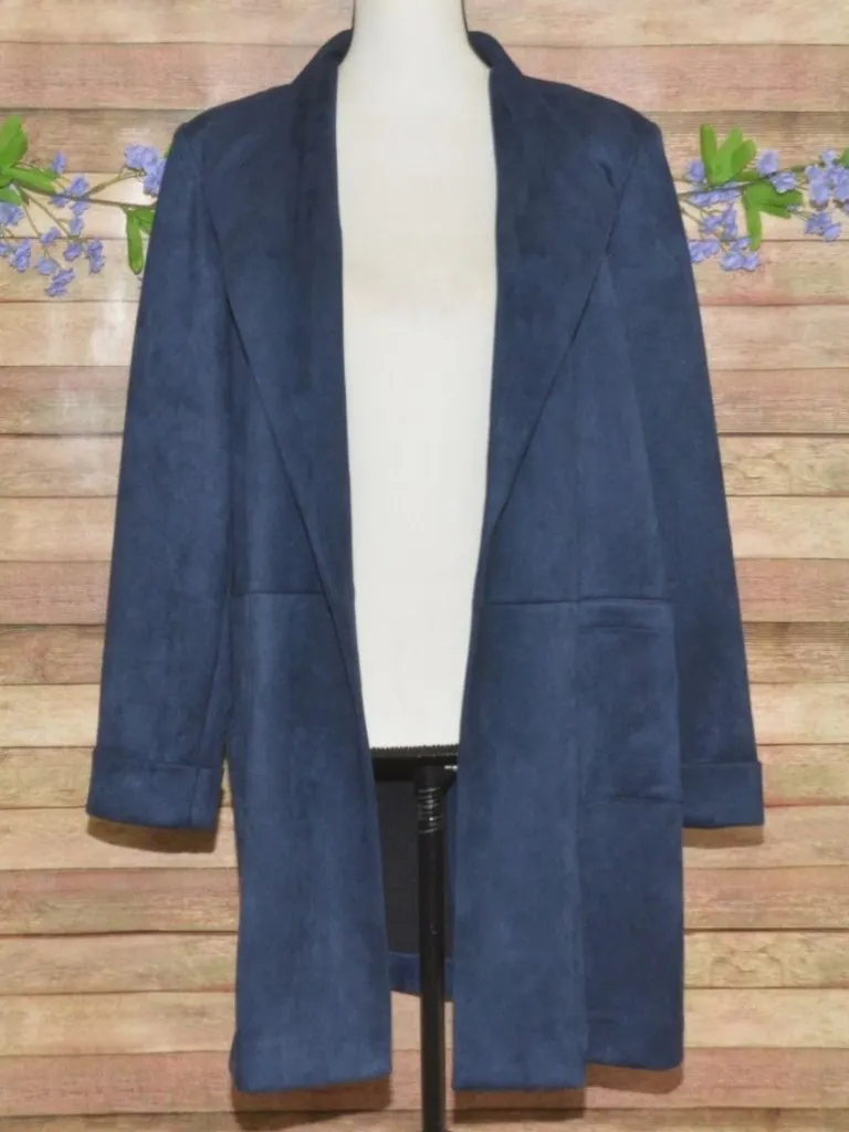 This Dressbarn Ladies Blue Soft Faux Suede Open Front Trench Coat Jacket offers chic winter warmth a... Show more