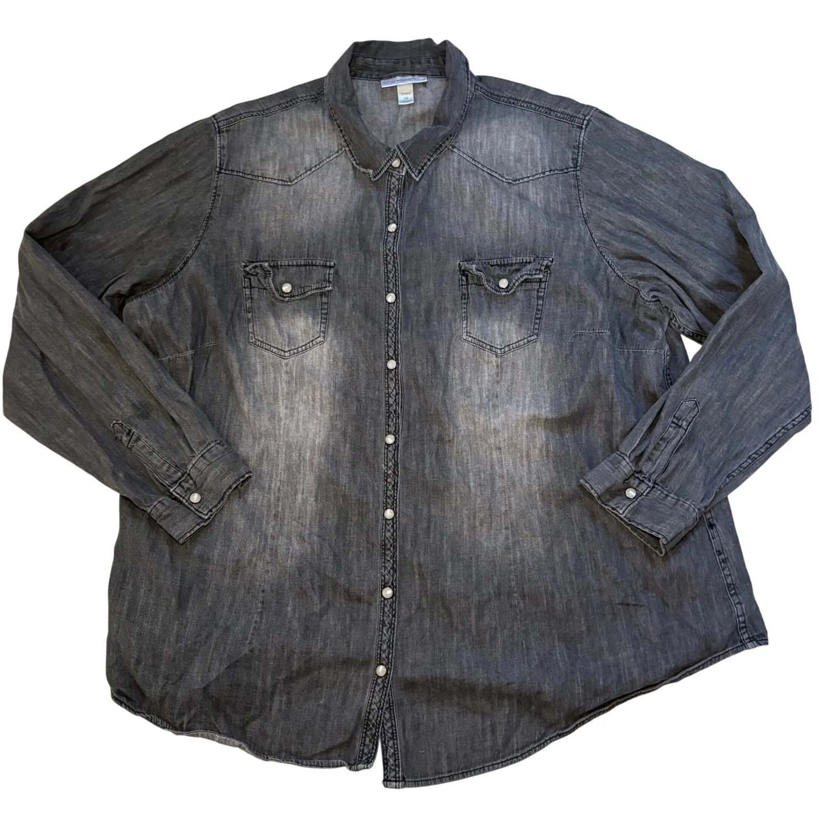 100% cotton. Excellent condition. Pearl snap button up closure. Women's size 2X. Please see Measu... Show more