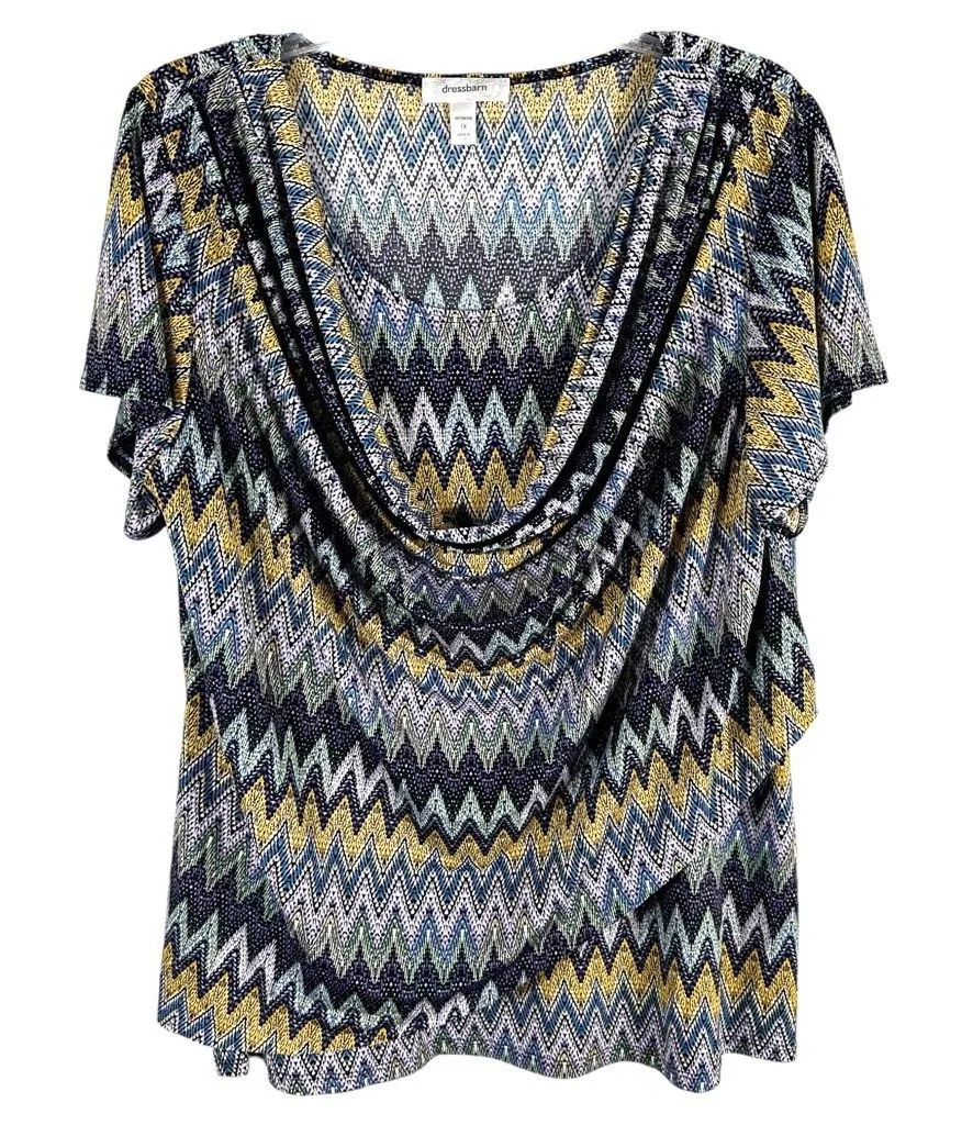 Dressbarn Plus Size 1X Top Chevron Purple Blue Drape Neck Short Sleeve 1533 Chest: 23” across Lengt... Show more