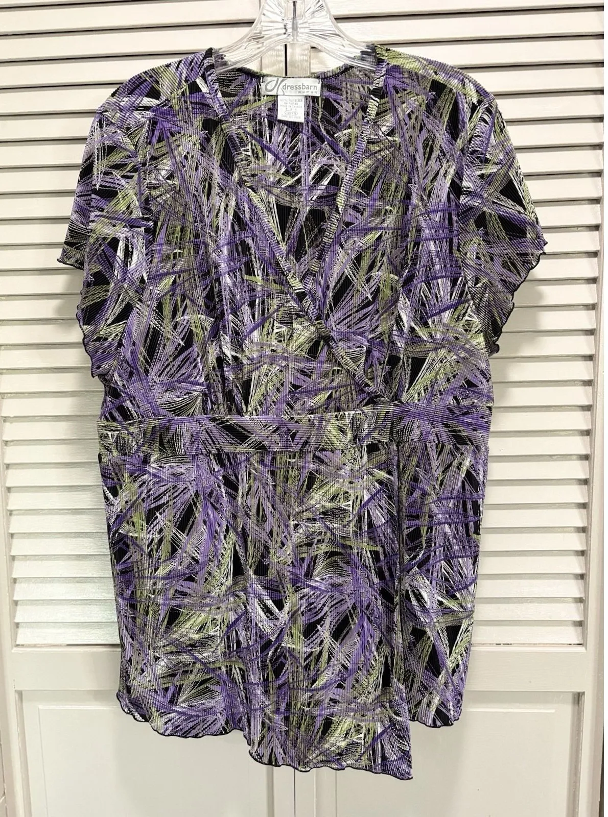 This Dressbarn Purple/Green Abstract Chiffon Short Sleeve V Neck Blouse in size 18/20 is a stylish a... Show more