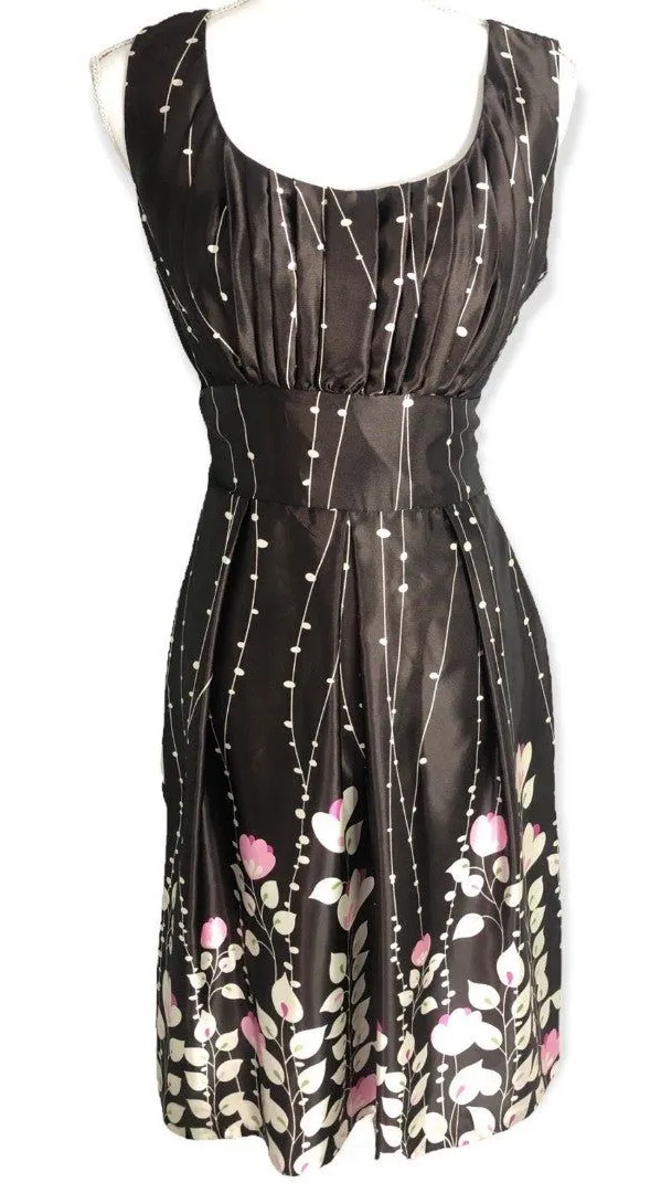 Features: Floral Details Sleeveless Scoop Neck Pleated Details Adjustable Waistband Side Zip Over... Show more