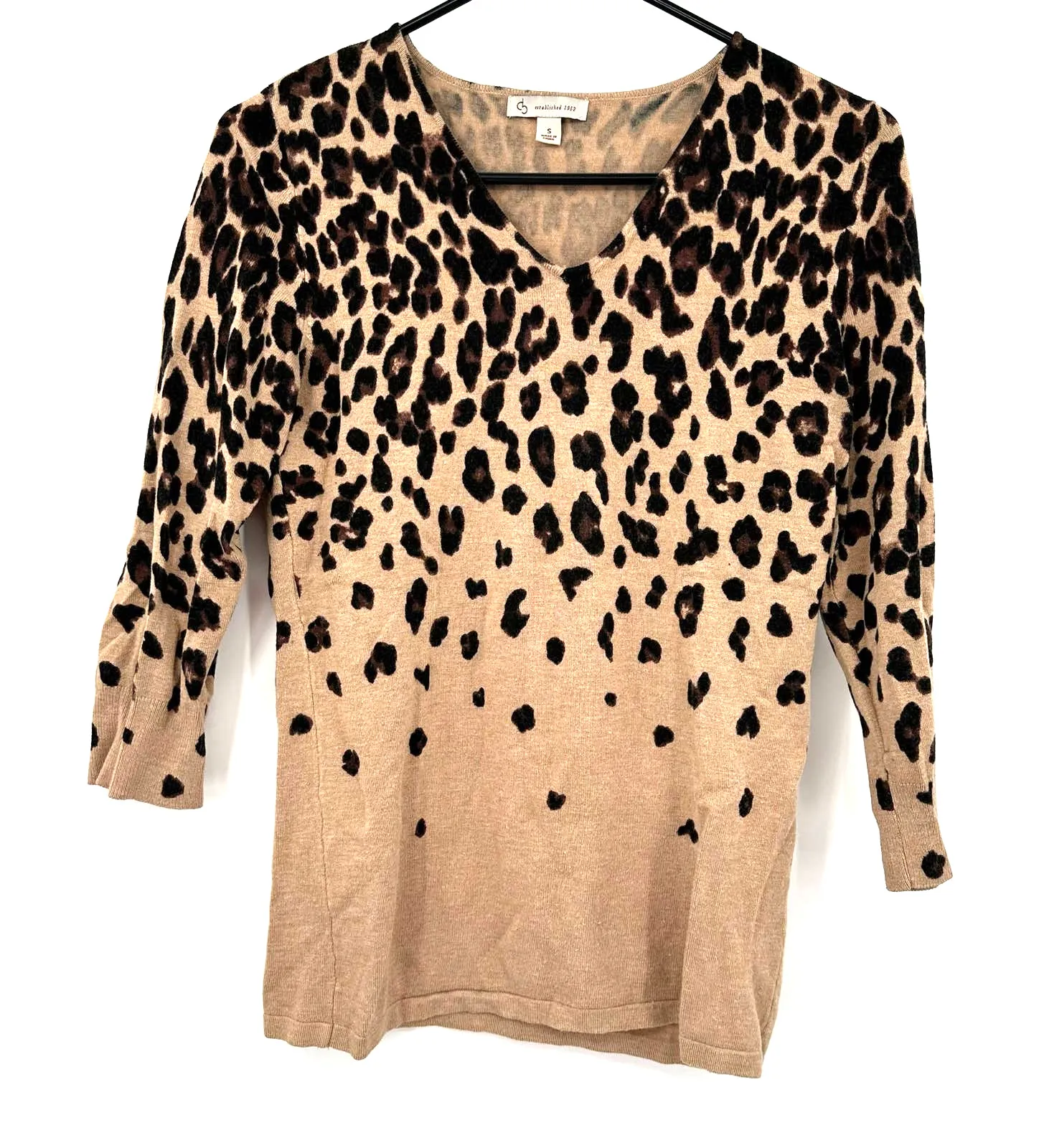 dressbarn size small 3/4 length sleeves blouse top shirt ombre like cheetah print pattern tan brown... Show more