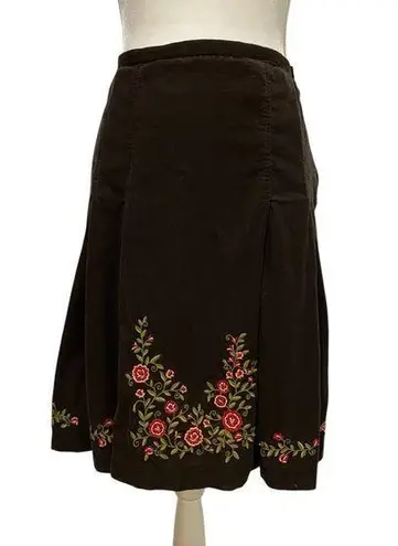 DRESSBARN Skirt A-Line Midi Length, side zipper, brown corduroy, box pleated, beautiful embroidery d... Show more