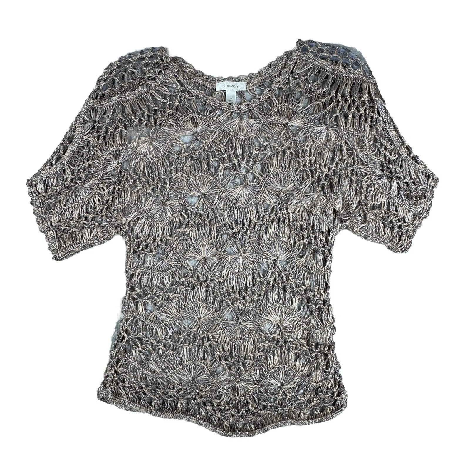 Women's Size Medium Short Sleeve Scoop Neck Crochet Open Knit Scallop Trim Lightweight Breathable P... Show more