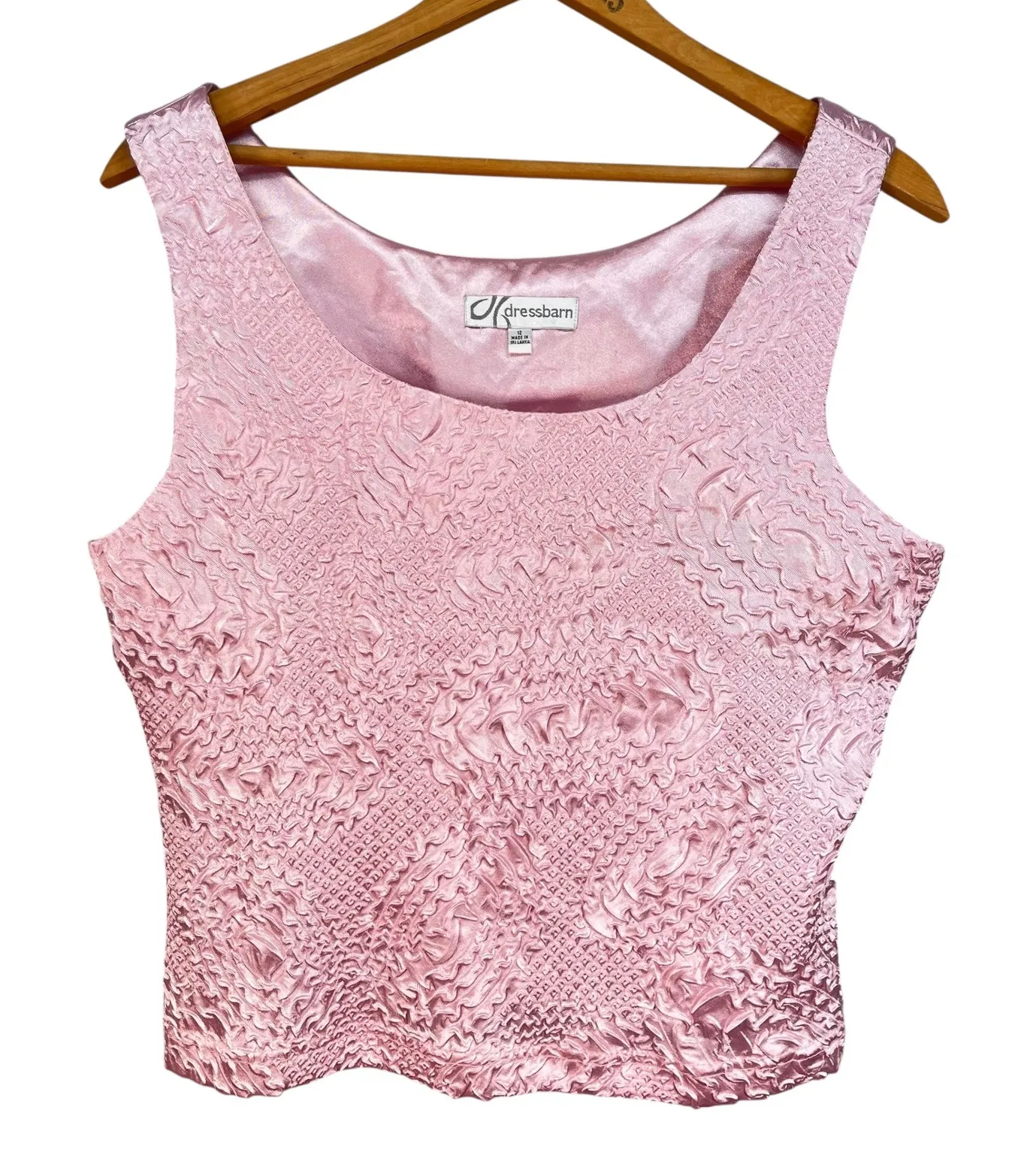 Add a pop of color to your wardrobe with this Dressbarn pink sleeveless top. Made with a textured em... Show more