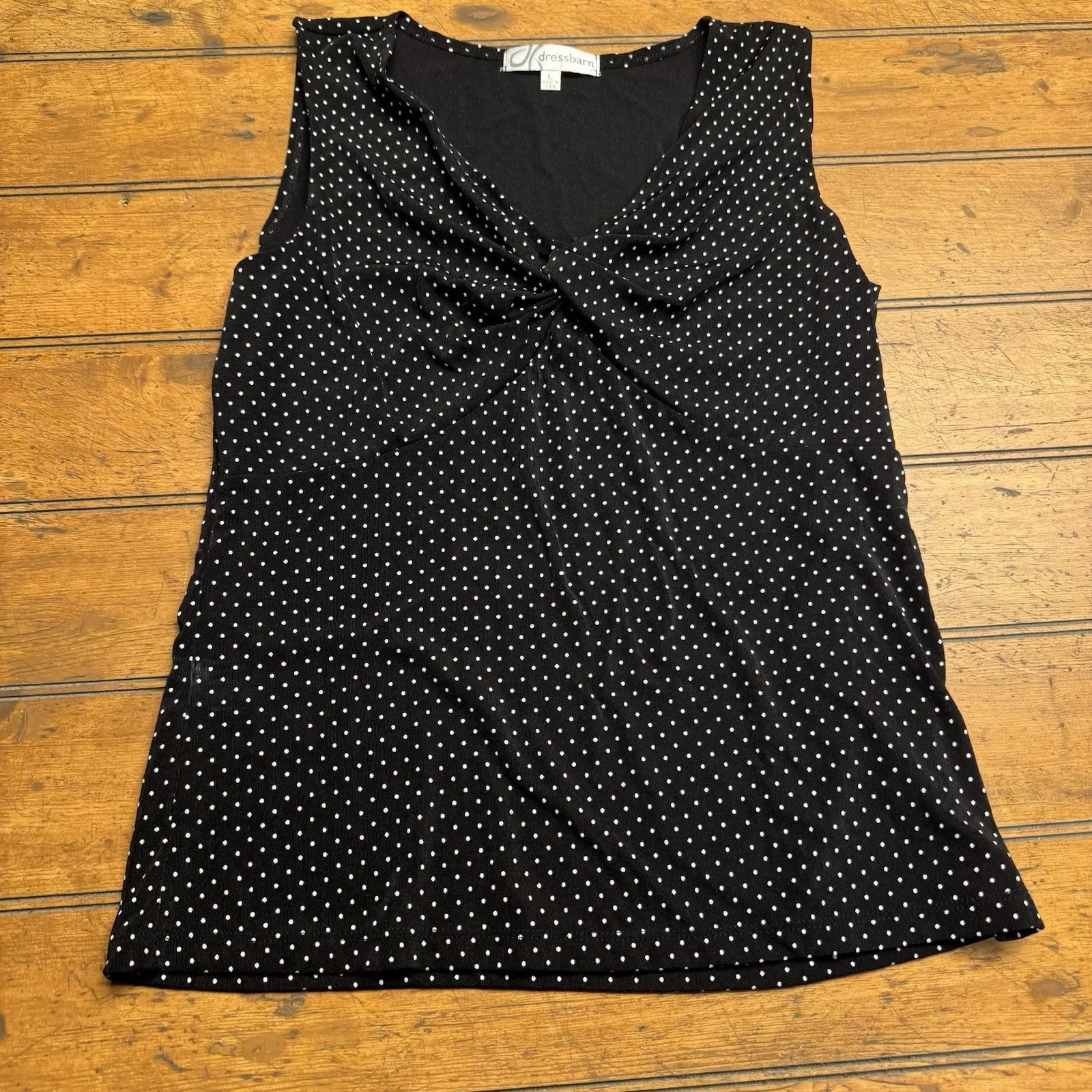 Dressbarn Womens Tank Top Blouse Front Polka Dot Scoop Neck Black White L