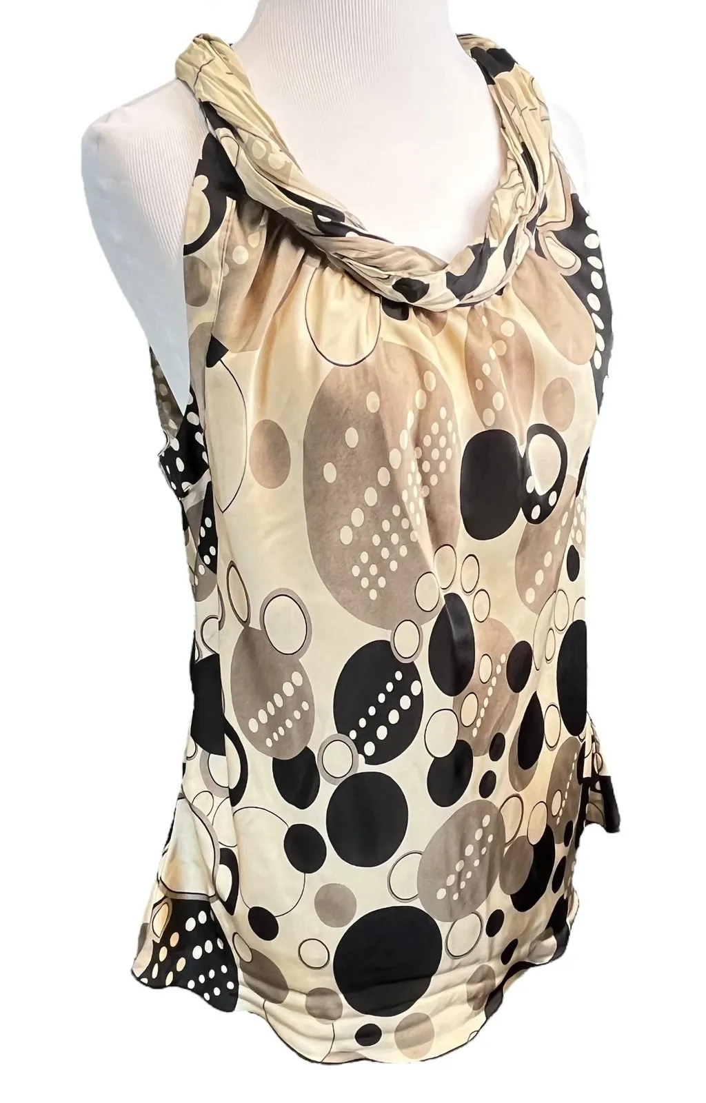 Dressbarn sleeveless halter top with a chic circle print, an ideal addition to your wardrobe. Flaw:... Show more