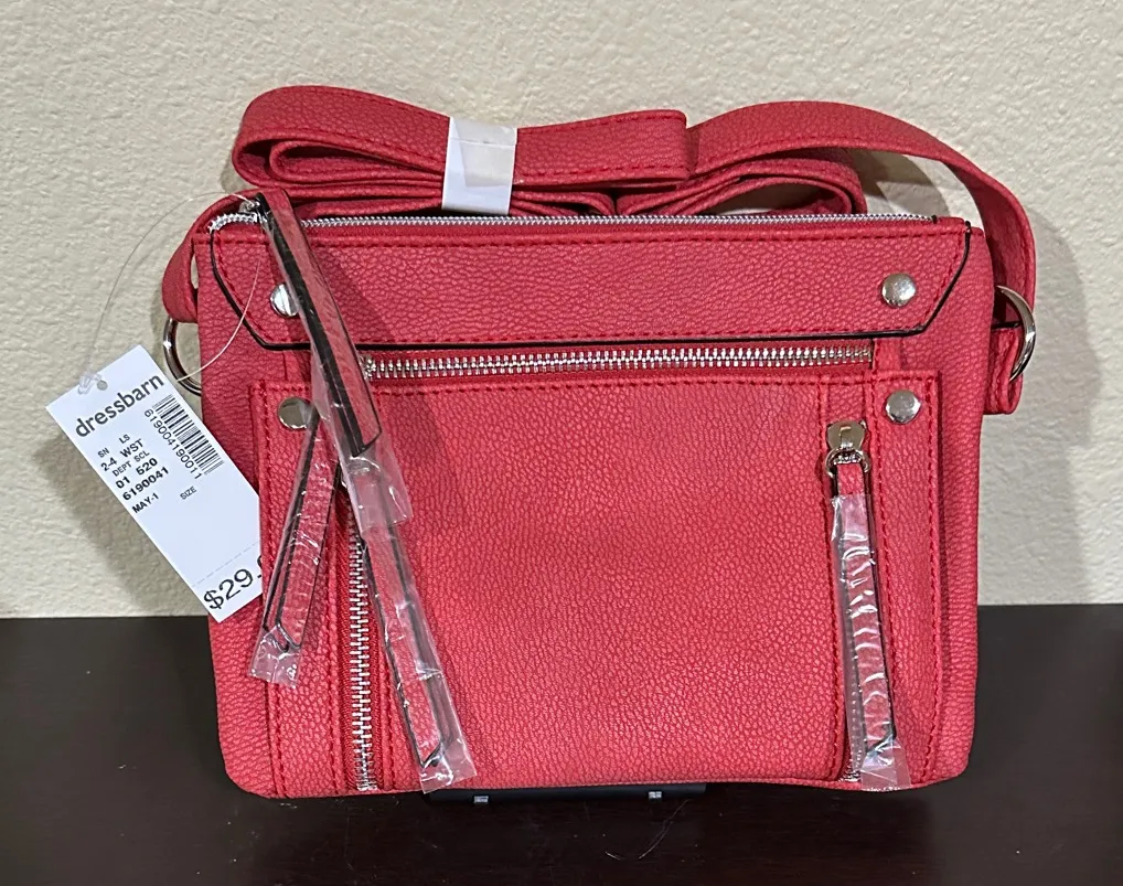 Chic and compact crossbody bag by Dressbarn. Features a bold red hue with sleek zipper accents. Idea... Show more