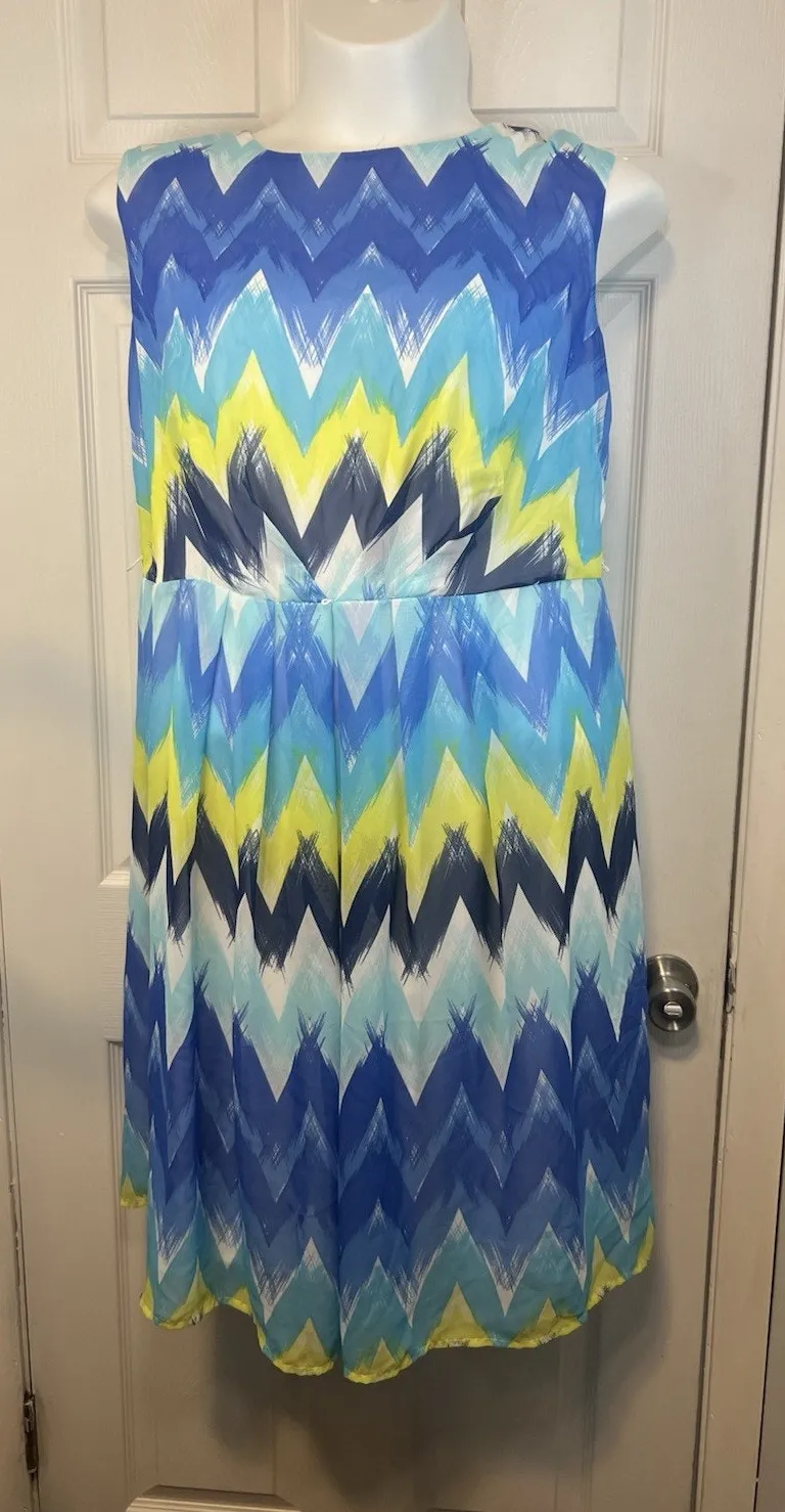 Dress Barn aize 16 blue and yellow polyester cocktail dress