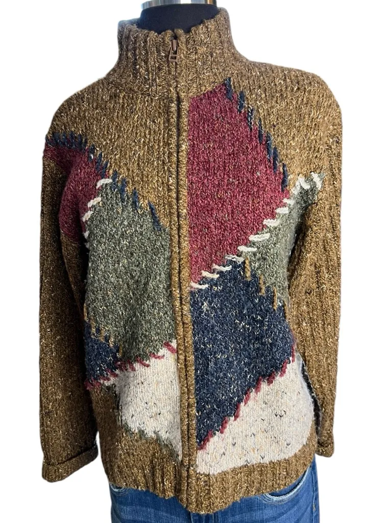 Vintage color block Y2K 90s Cardigan Grandmacore Sweater DRESSBARN Woman Geometric Chunky Knit Plus... Show more
