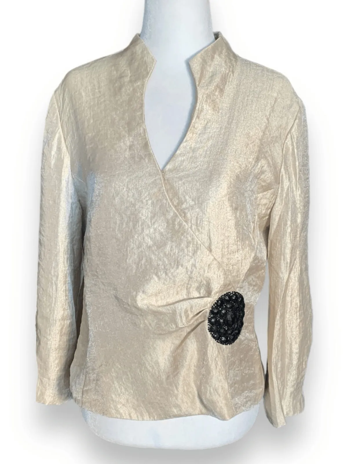 90s Dress Barn Collection Jacket Top Vintage Size 10 Sparkling gold metallic Mandarin collar Notched... Show more