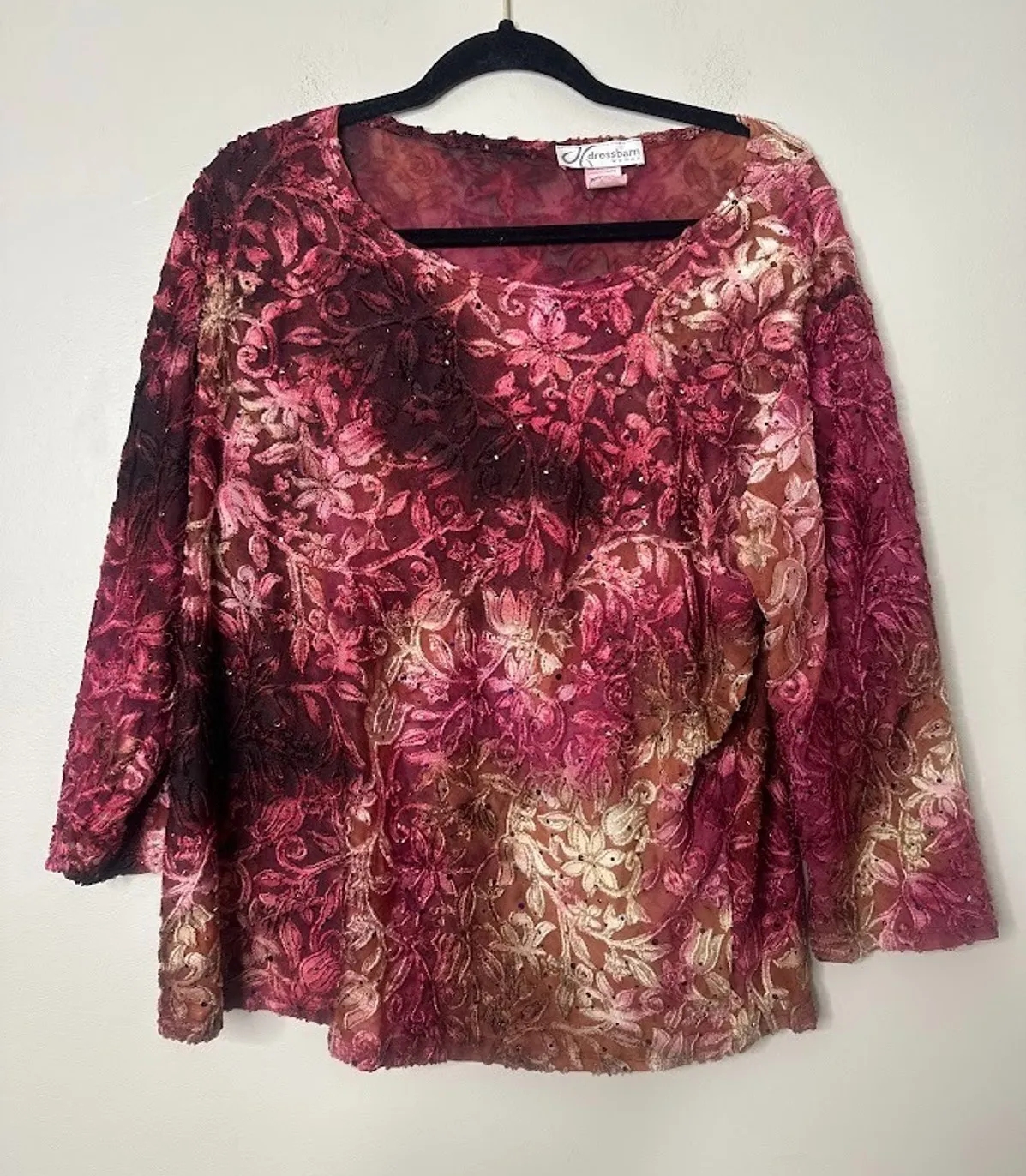 Vintage Dressbarn Woman Top Size 1X Velvet Burnout Whimsigoth Autumn Fairy Stretch Made in USA Ver... Show more