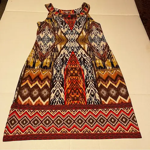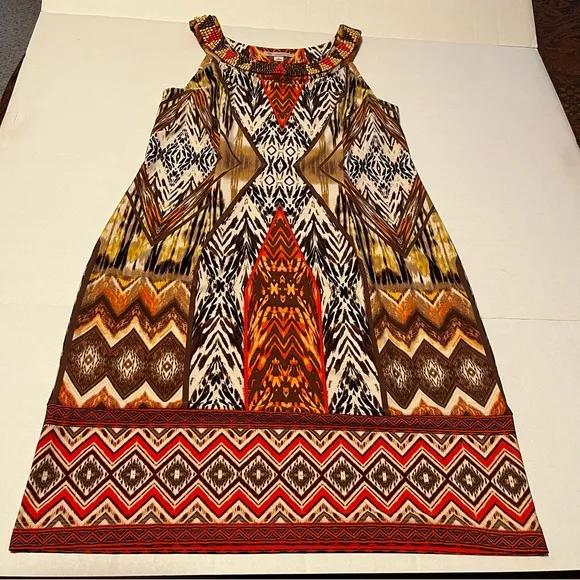 Dress Barn tribal Aztec boho Bohemian Native sleeveless dress with beaded neckline to the front... Show more
