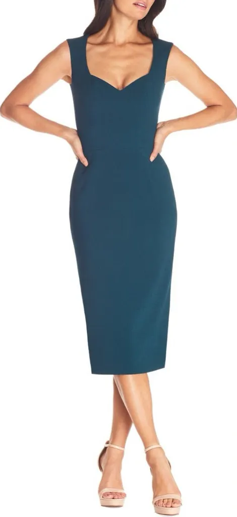 Elegant and timeless Dress the Population sheath dress in a rich pine green shade. Features a flatte... Show more