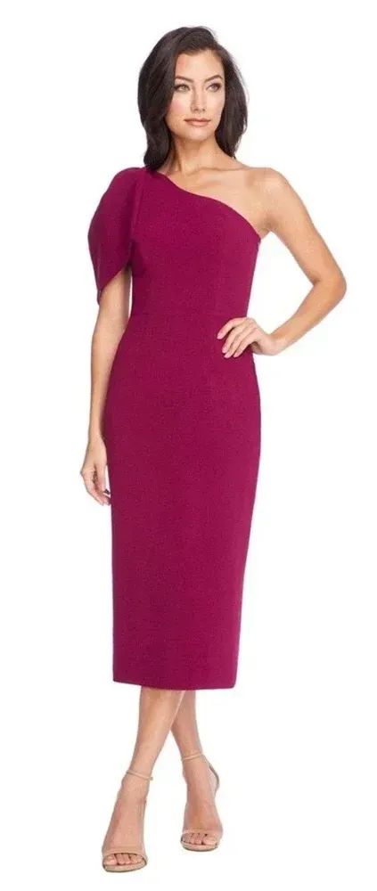 $148 Dress The Population Tiffany Dress Small Excellent condition no flaws! Tiffany is a sophisticated ensemble that flatters your figure. This elegant asymmetrical dress features a large bow that drapes over the single shoulder strap. Made of our stretch crepe material, this dress has a form-fitting silhouette and a straight, midi-length skirt. It tapers at the waist and has a back slit, adding style and improving mobility. An elegant one-shoulder neckline and figure-hugging silhouette style a sophisticated midi dress with two panels that cascade over the single shoulder. * 43 1/2" length (size Medium) * One-shoulder neck * Sleeveless * Lined * DARK MAGENTA Self: 97% Polyester 3% Spandex Lining: 100% Polyester #8d936 Tags: vacation, beach, going out, party, event, formal, wedding, wedding guest, girls night, date night, black tie, chic, classic, slip dress, glam, regency, elegant