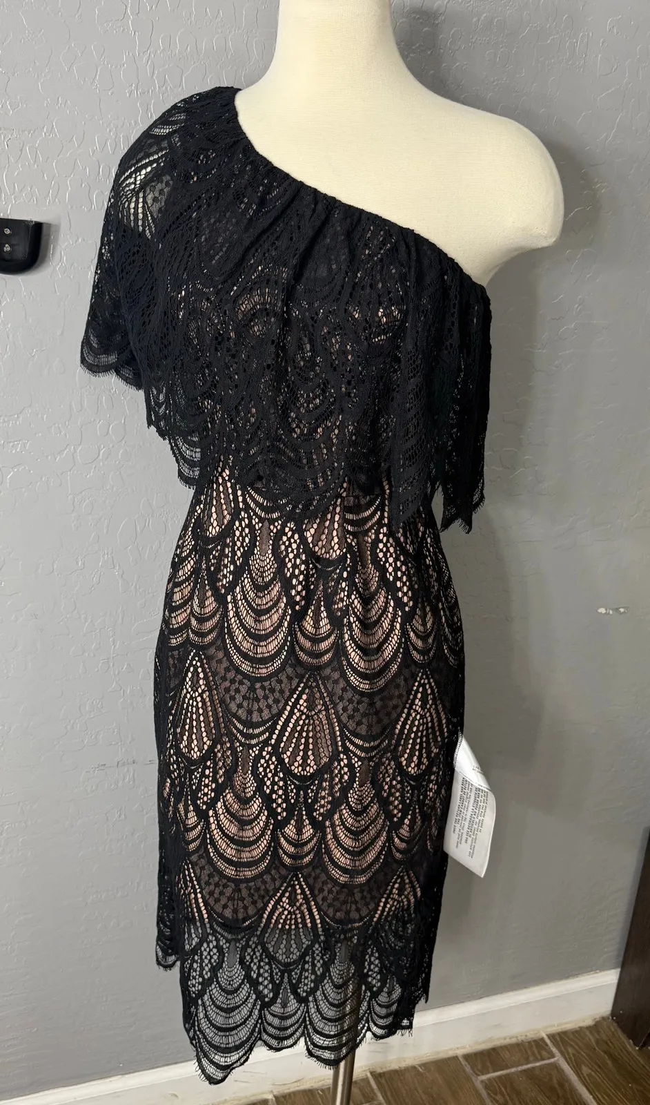 Dress The Population Tori Lace Flutter Sleeve One Shoulder Dress, Black, XS Black - $47 New With Tags - From Jaquelin