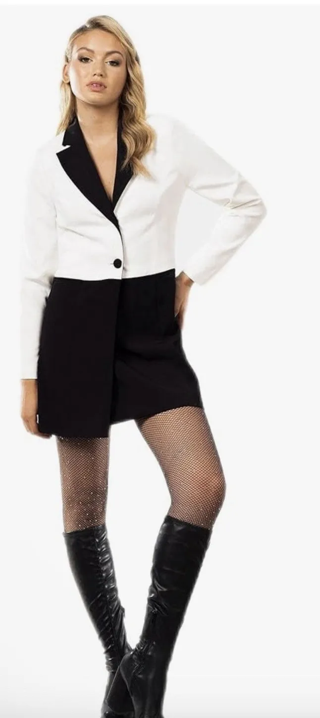 The Dress the Population Women's Berkley Bodycon Mini Glam Tuxedo Dress in size XXL is a stylish and flattering dress designed specifically for plus-size women. This multicolor mini dress features a sophisticated tuxedo style, perfect for a special occasion or a night out. The bodycon silhouette and glam detailing make it a standout piece in any wardrobe, offering both comfort and style for the modern woman. 22215. 5300. 101625