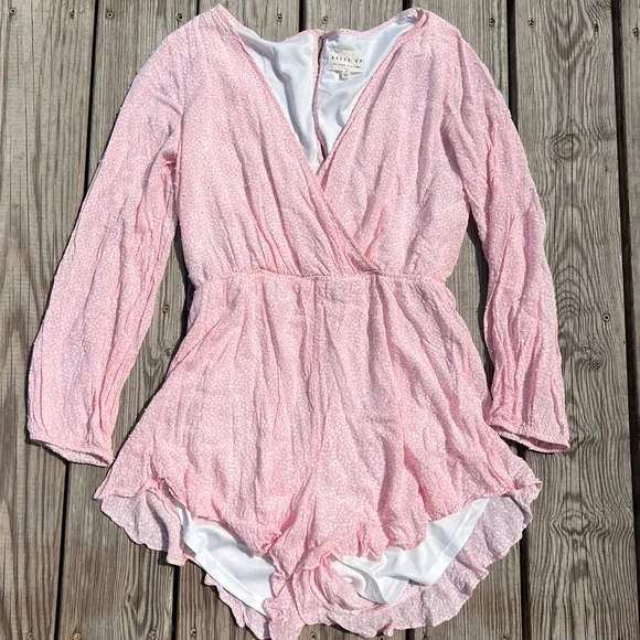✨ excellent preloved condition ✨ flowy comfy lightweight romper ✨ beautiful light pink and white... Show more