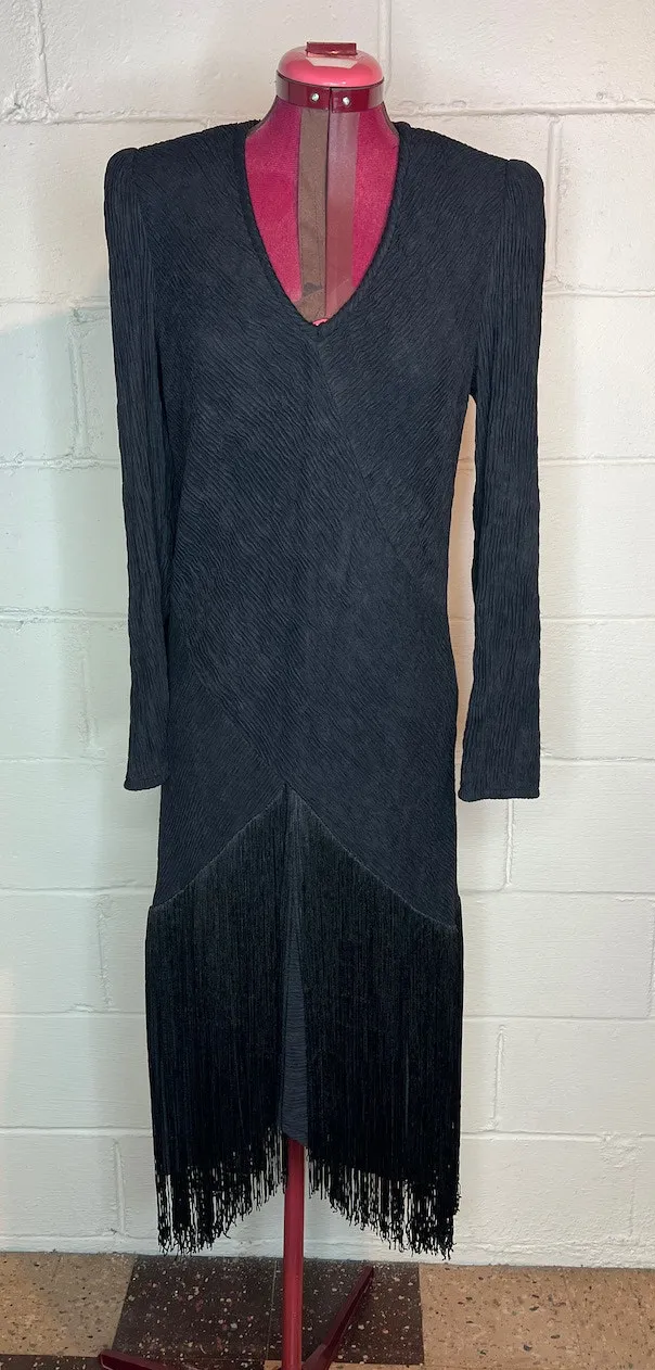 dress long sleeve fringe black 1990s Size small made in the USA Be aware that vintage sizes may va... Show more