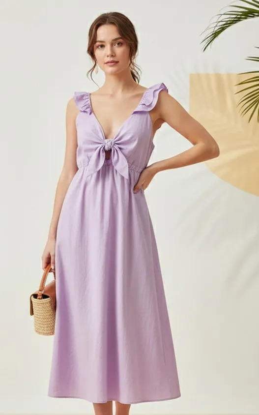 Fantastic summer dress. Brand new with tags. -Medium Measures at 47" in Length -59% Cotton / 37% Polyester / 4% Elastane -V Neckline with Tie Detail -Keyhole -2" Non-adjustable Straps with Ruffle Tiered -Elastic Empire Waist -Midi Length -True to Size