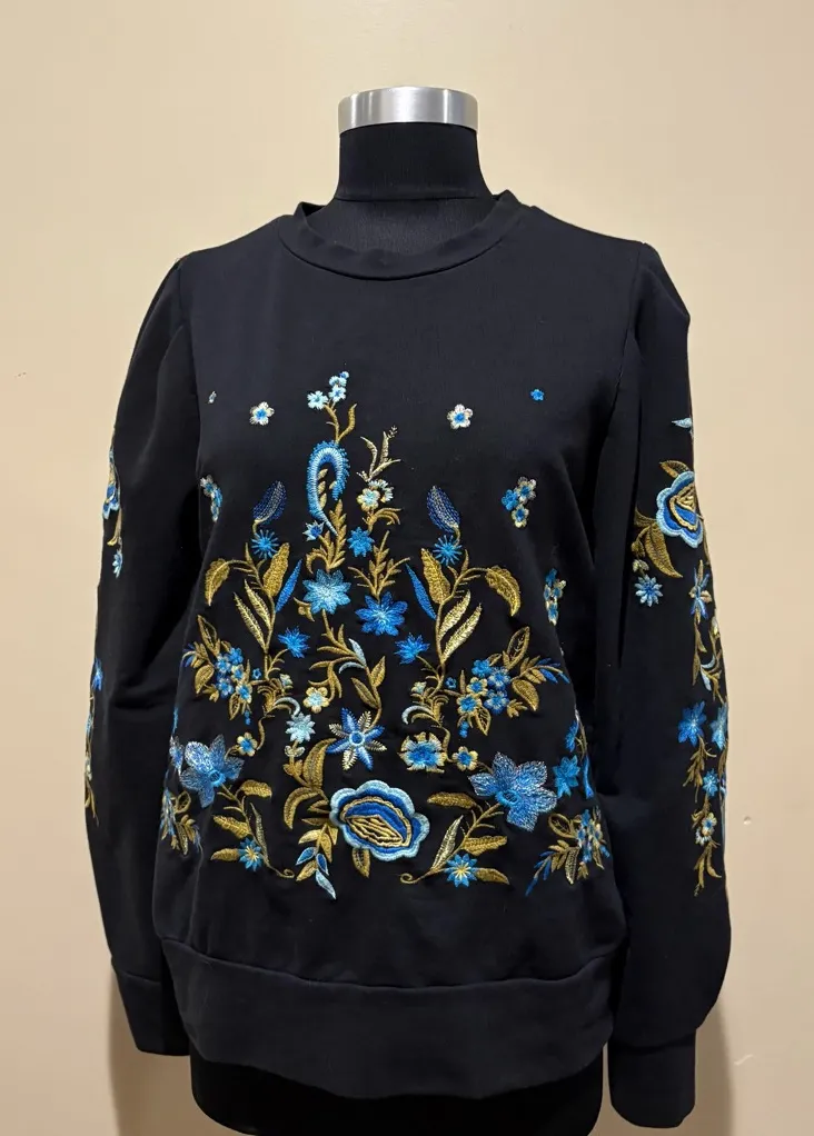 DREW Black Sweatshirt with Blue and Gold Floral Embroidery - $35 - From Lucelia