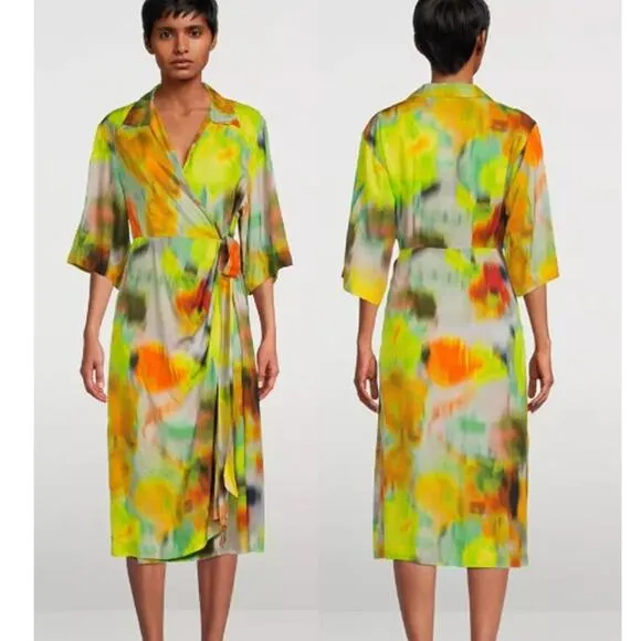 Dries Van Noten Darola Watercolor Print Midi Wrap Dress Yellow Women's Size 38 / US 6 MSRP: $1450 I... Show more