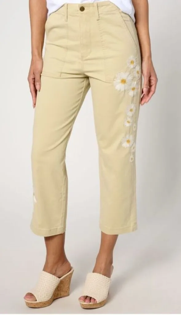 Driftwood Jeans Utility Boyfriend Crop Pants Daisy Daydream Floral Embroidery Tan Size 2X - $33 - From Lindsey